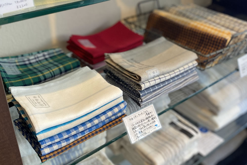 リネンのキッチンクロスは実店舗入り口の棚に並んでいて、その良さを知っている方はリピートで愛用されていますが、 はじめての方はお洒落な布に「?」の様子が見られることも。