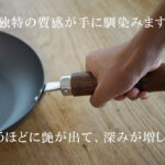 なお、しばらくご使用頂くと、適温がつかめてくるとともに、 フライパン表面に油が染み込み馴染んで、差し油のみでも快適に調理いただけるようになって参ります。 特に、使いはじめ暫らくは、予熱時の油返しを行ってみて下さい。